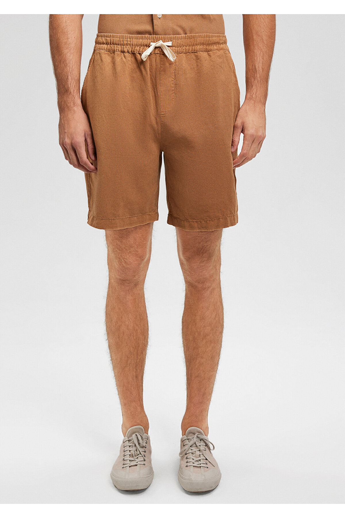 شلوارک قهوهای ترکیبی کتانی 0410134-82337