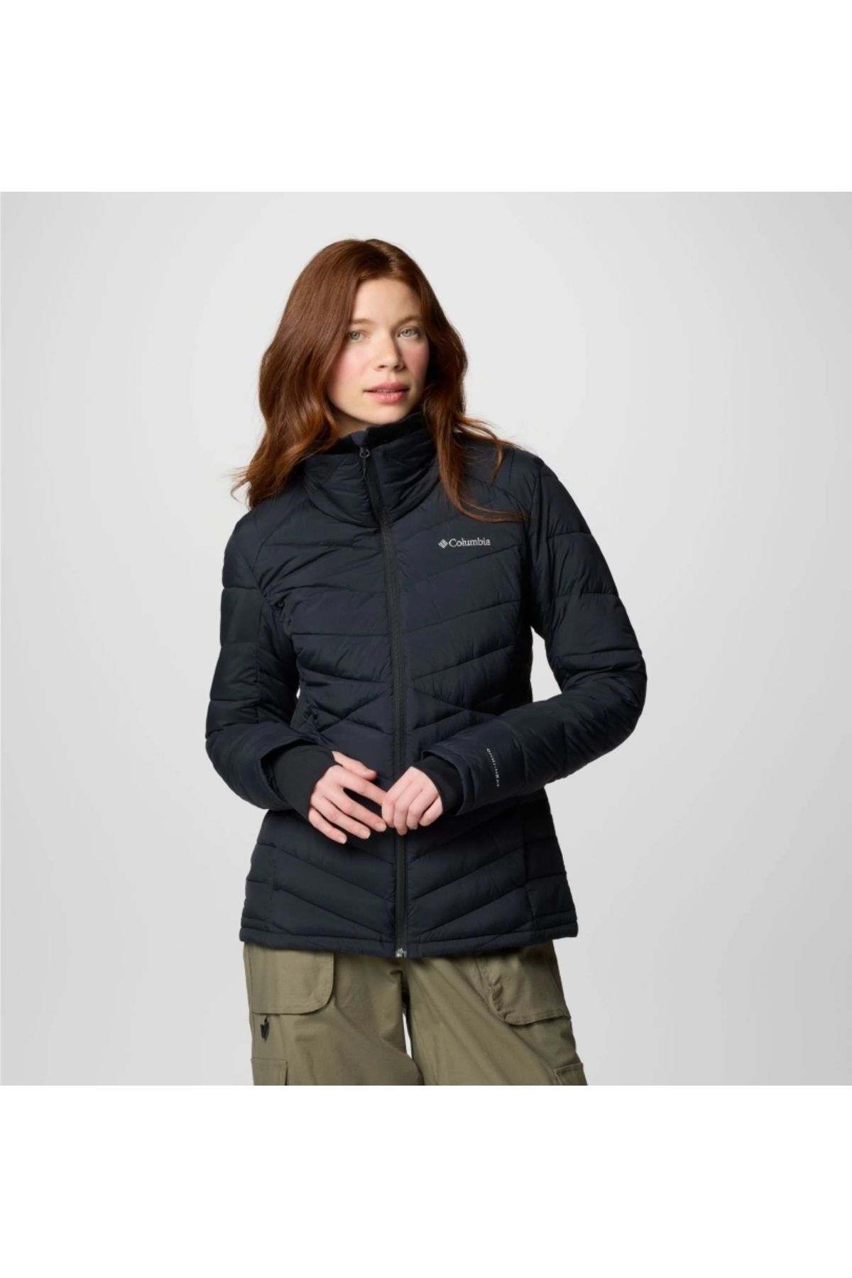 کاپشن کلمبیا مشکی آستین استاندارد | ژاکت زنانه زیپ کامل Joy Peak™ II که با هر تیپ بدنی با اندازه استاندارد خود سازگار است، استفاده راحت را ارائه می دهد.