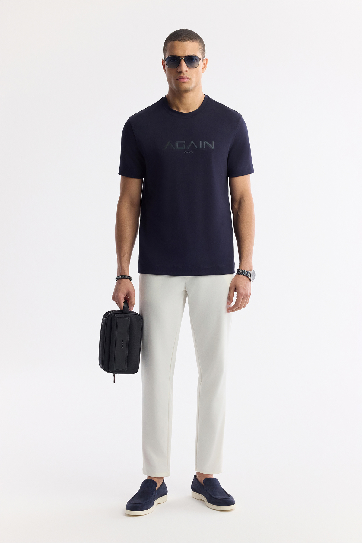 تی شرت مردانه یقه گرد سرمه ای طرح دو کشباف Interlock سایز معمولی A51Y1132