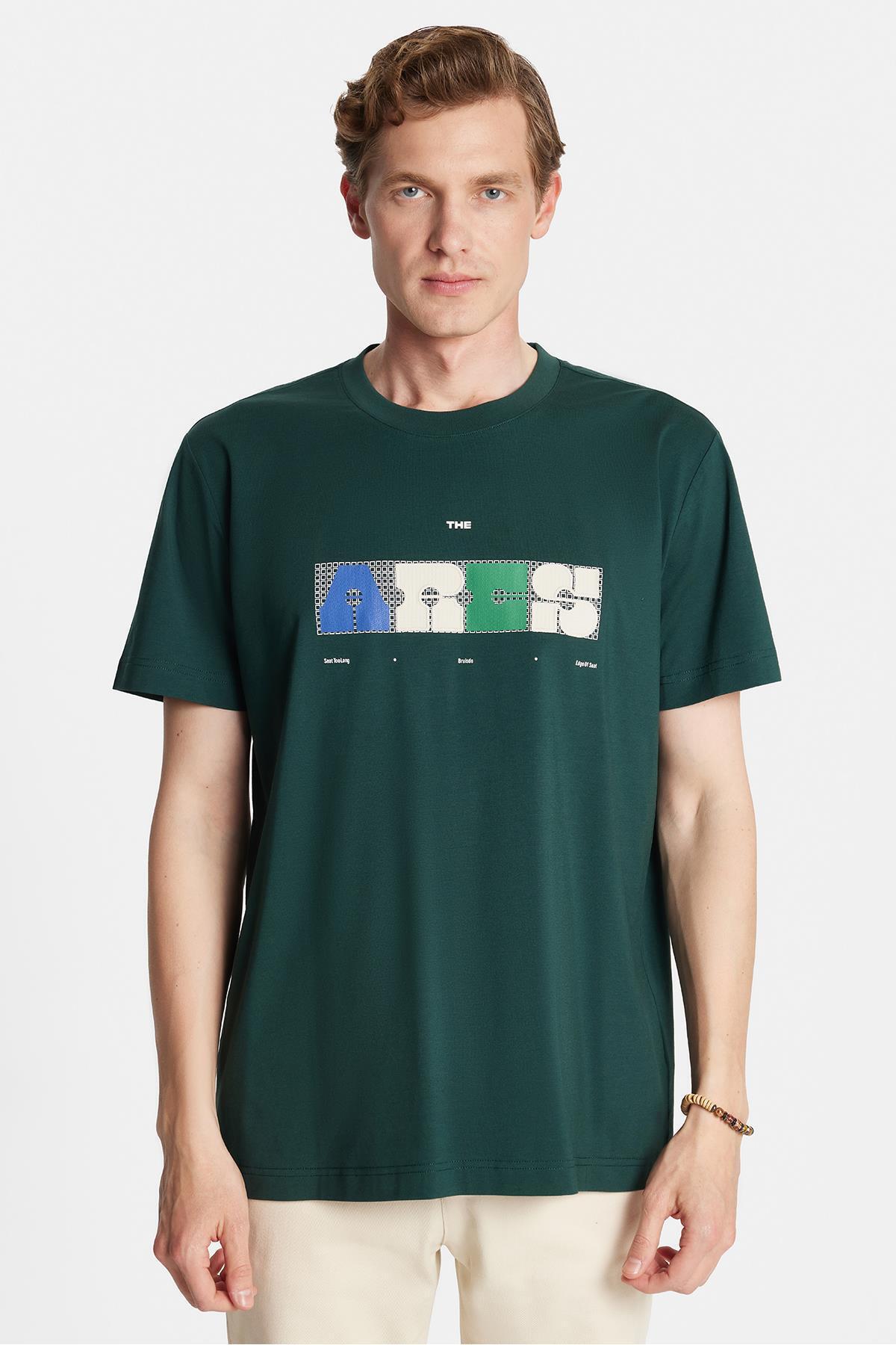تیشرت مردانه سبز یقه گرد طرحدار، راحت و مناسب برای استفاده روزمره، جنس نخی، جنس پنبه، جنس عالی