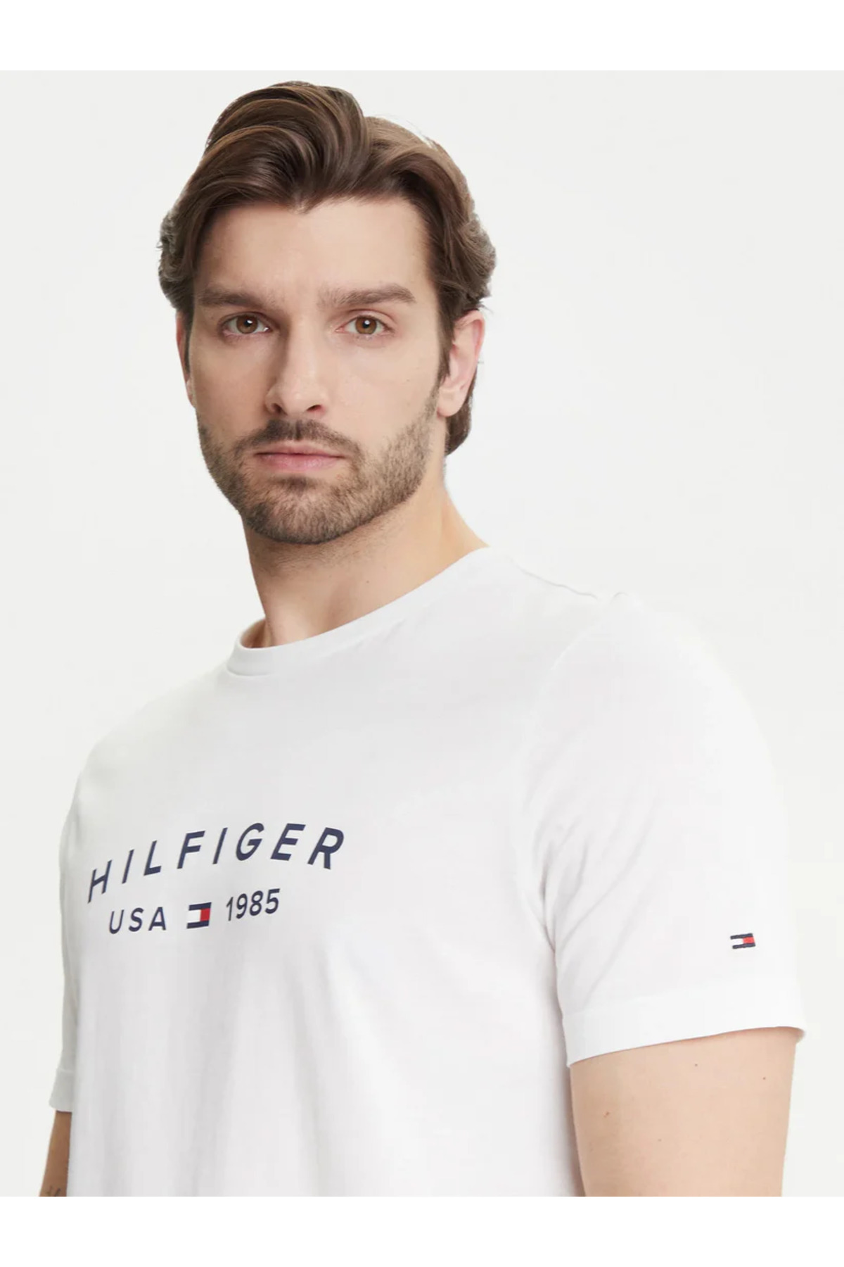 تی شرت مردانه آستین کوتاه یقه گرد تامی هیلفیگر طرح متن اسلیم فیت سفید MW0MW39356-YBR