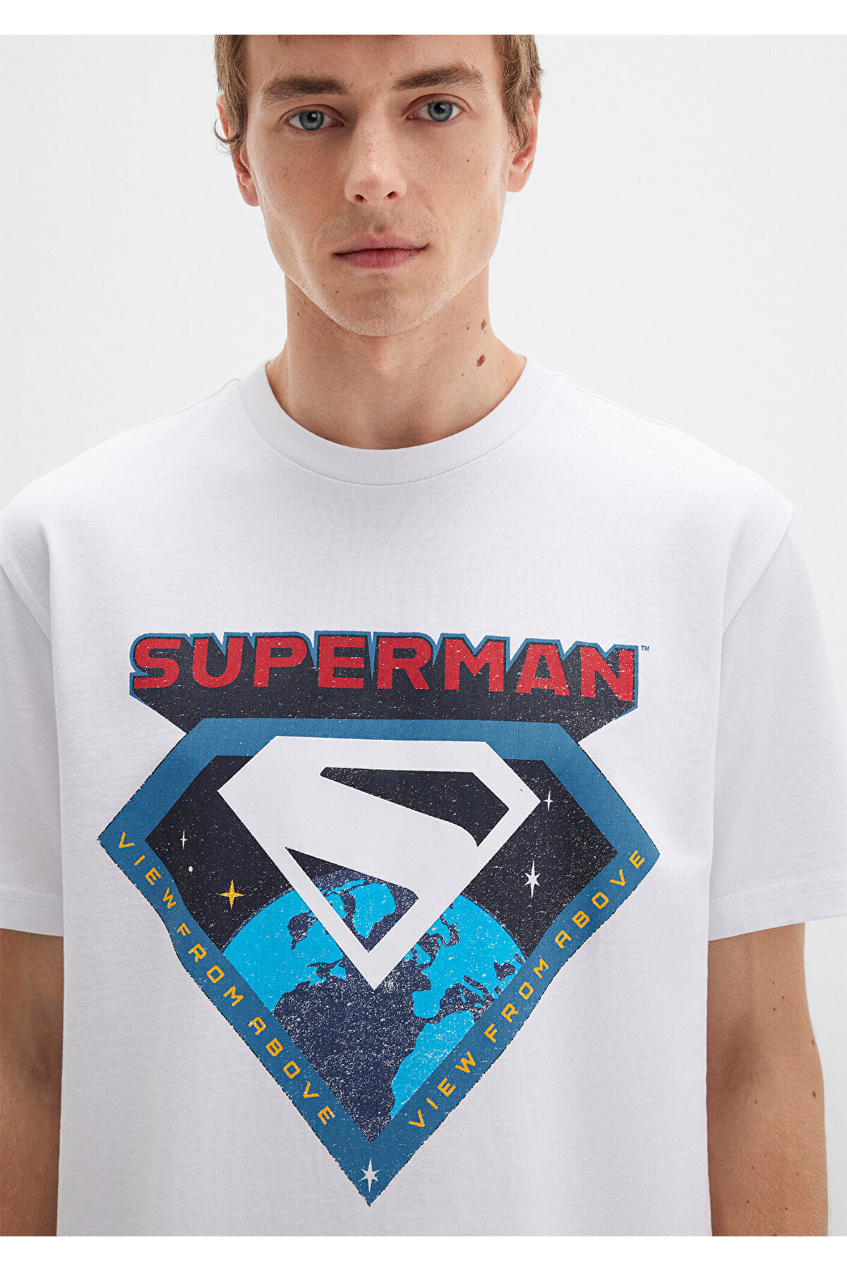 تیشرت سفید طرح سوپرمن، گشاد / برش آزاد و راحت، کد 0612917-620